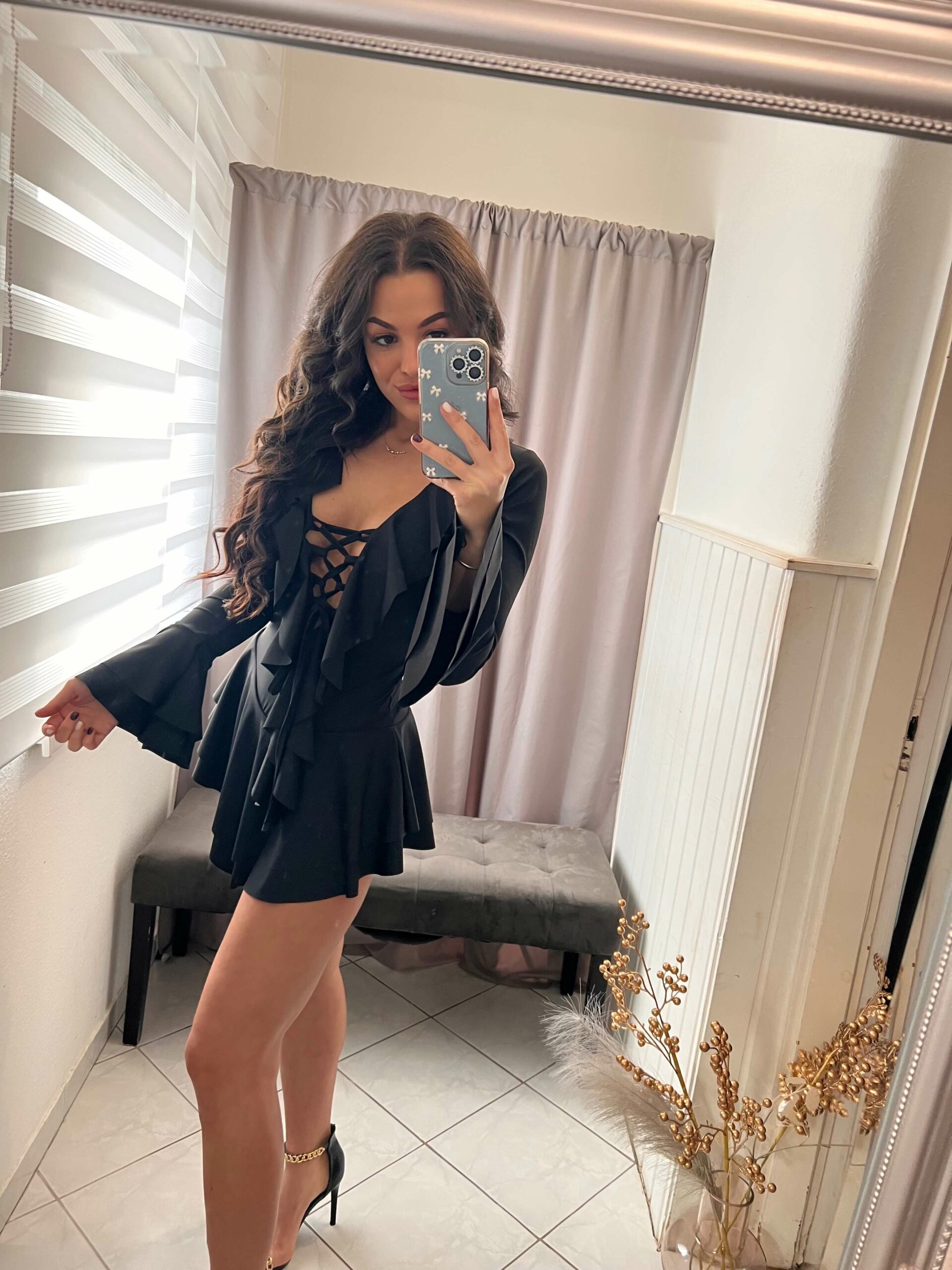 Floren fekete fodros fazonú szoknya nadrágos overál.