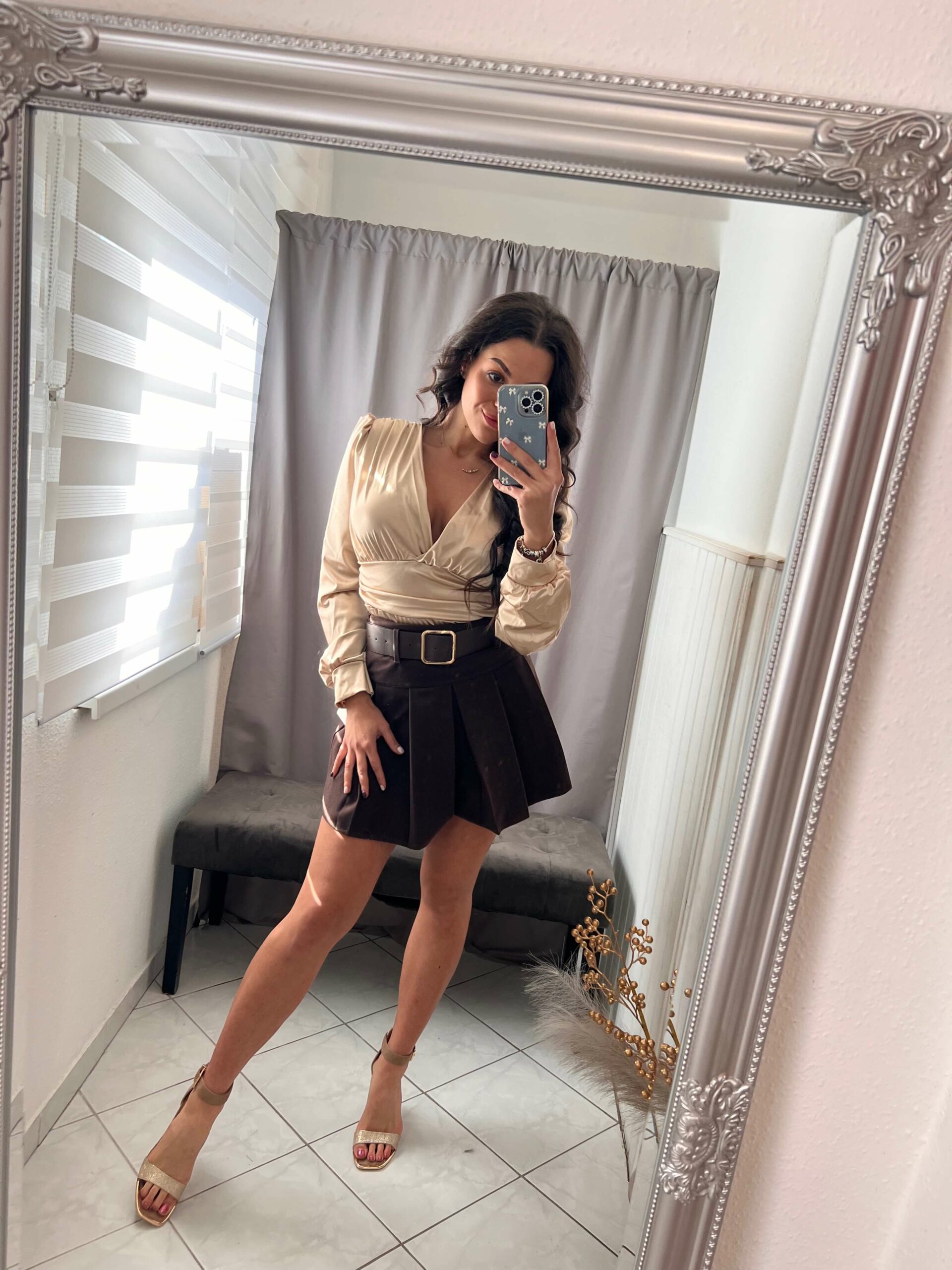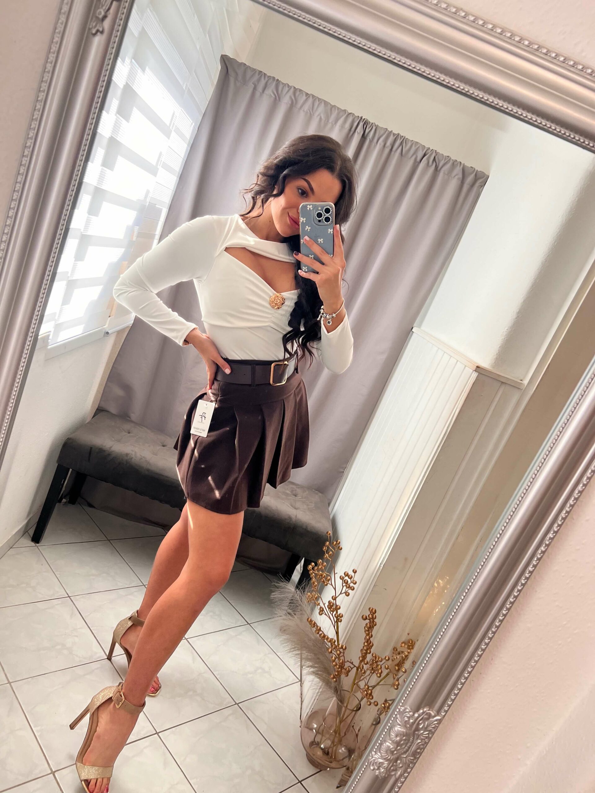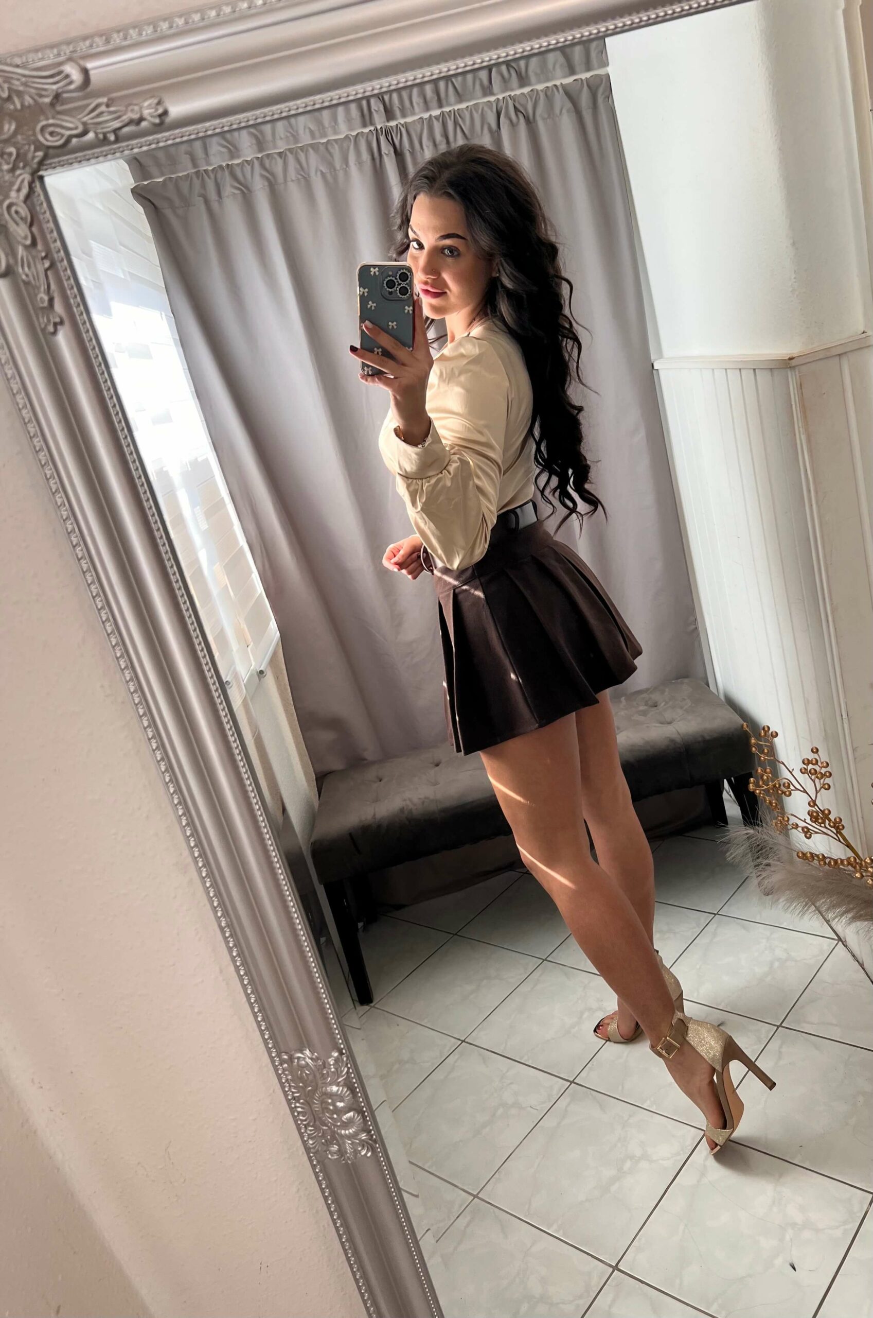 Tessi csoki barna öves szoknya, gumis elasztikus derék résszel.