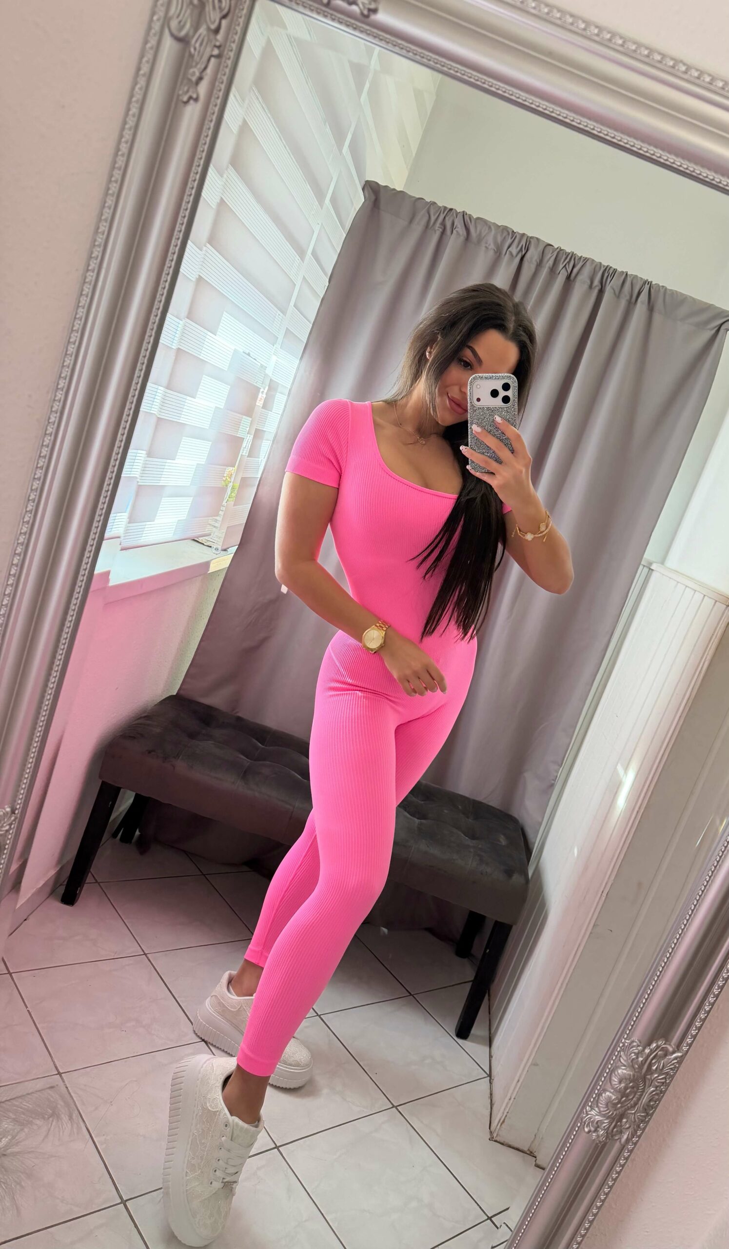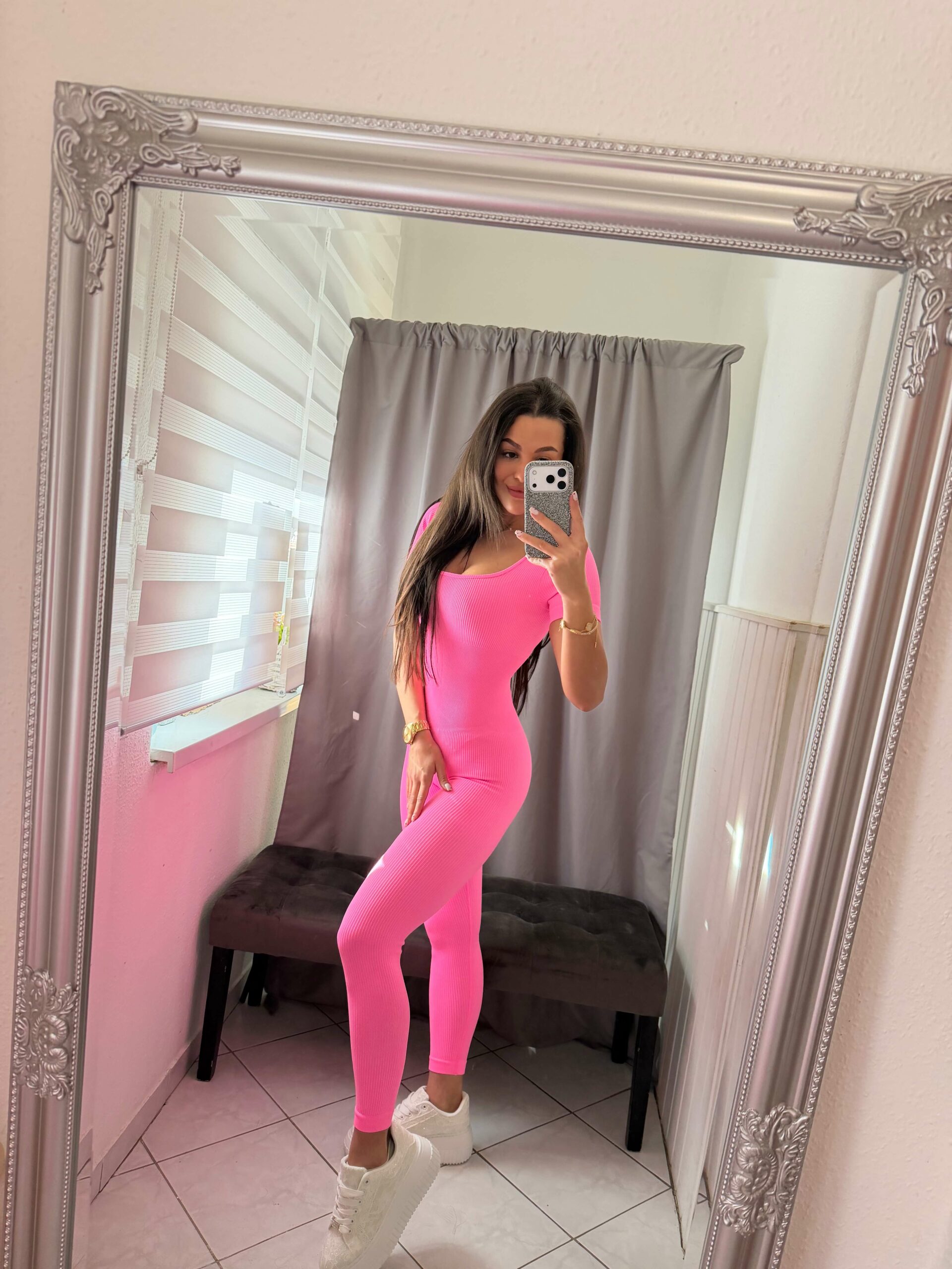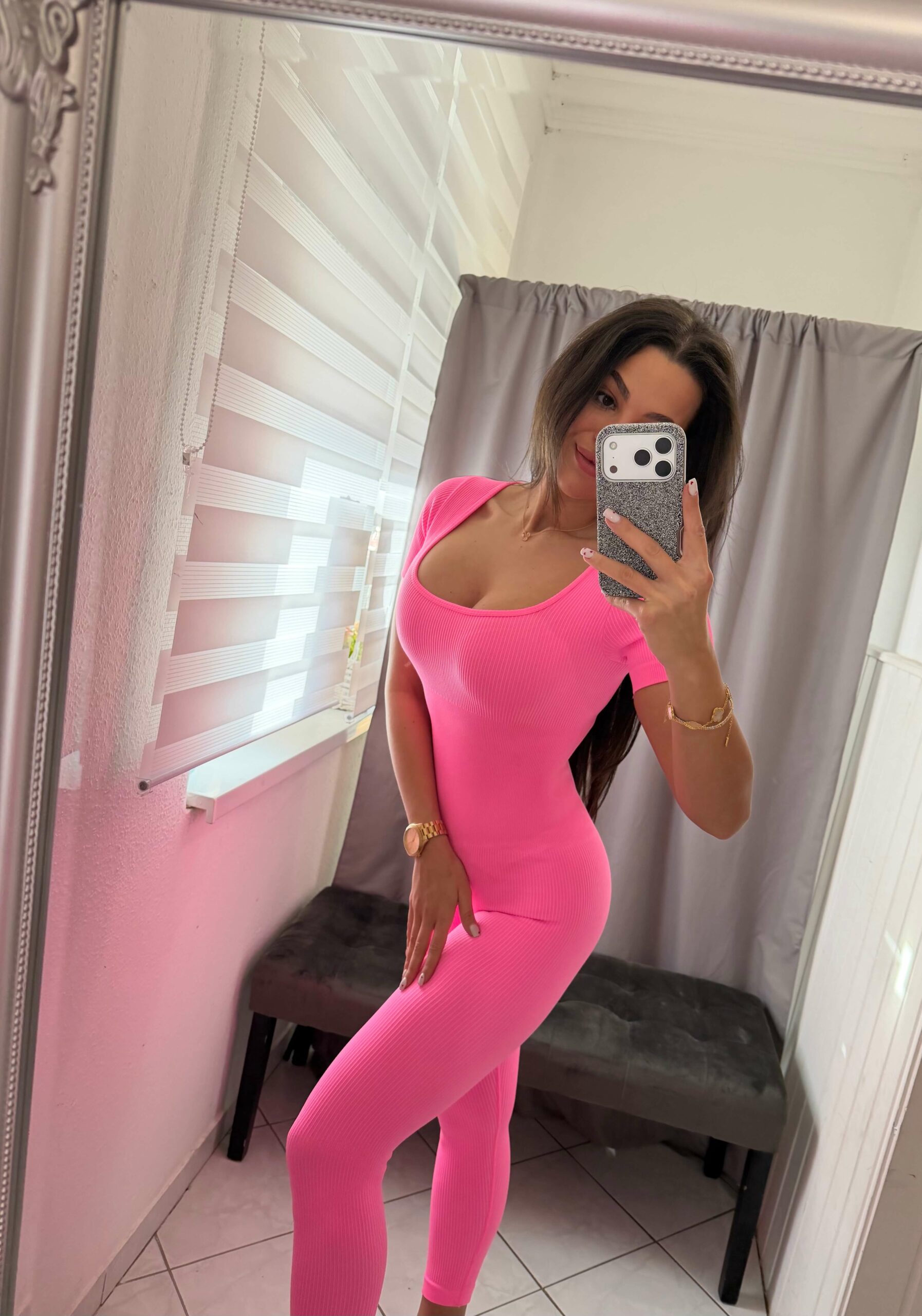 Arina alakformáló neon pink overál.