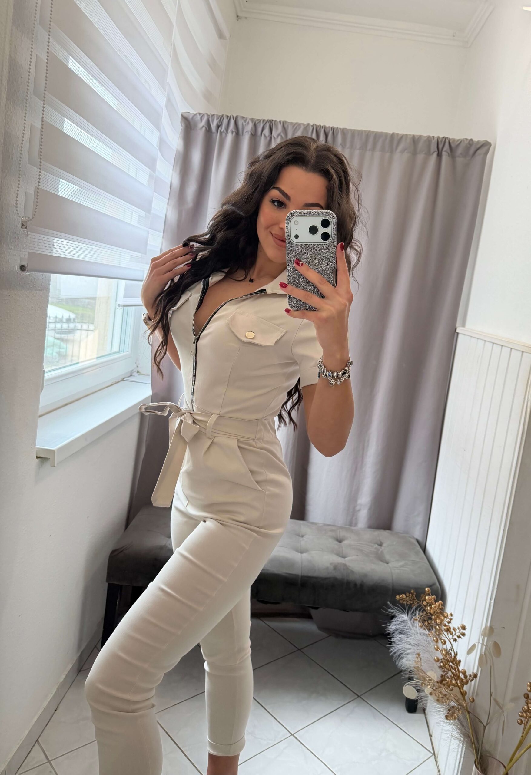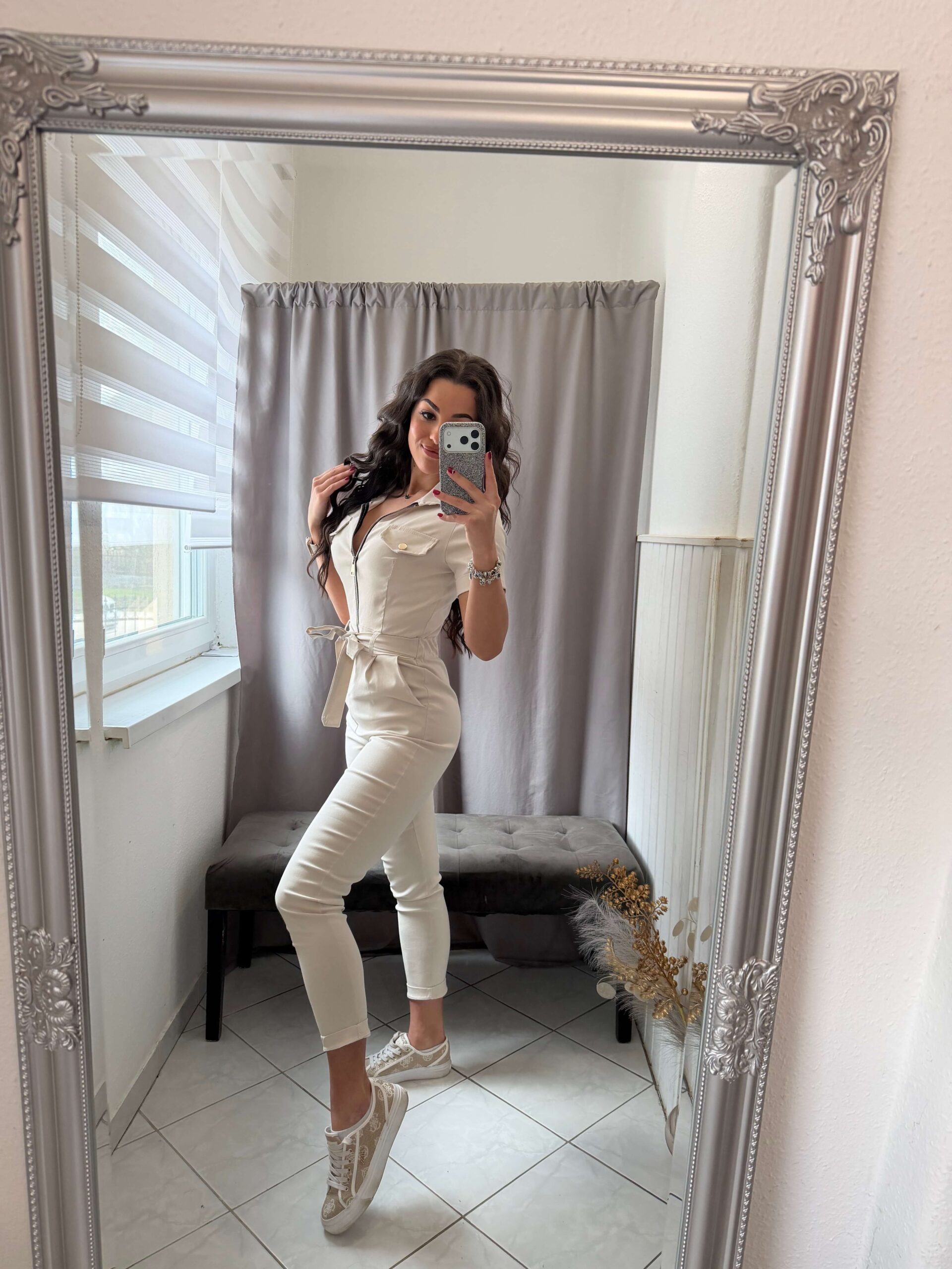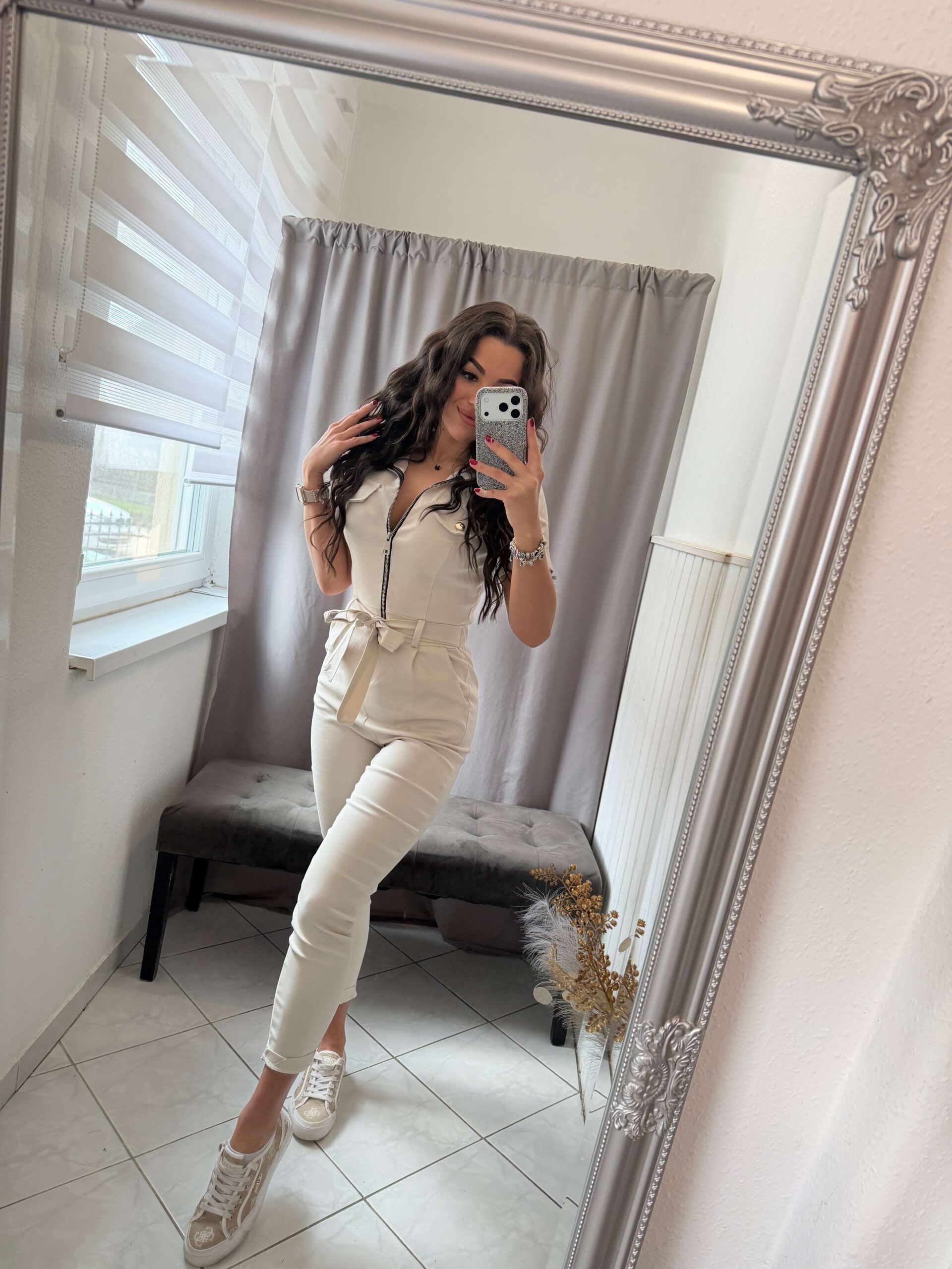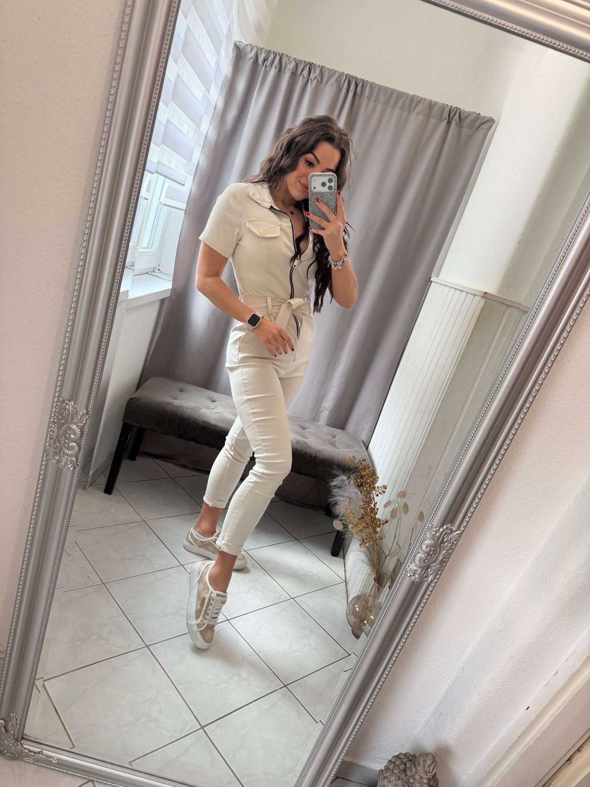 Holen vászon bézs overál. Rövid ujjú fazon.