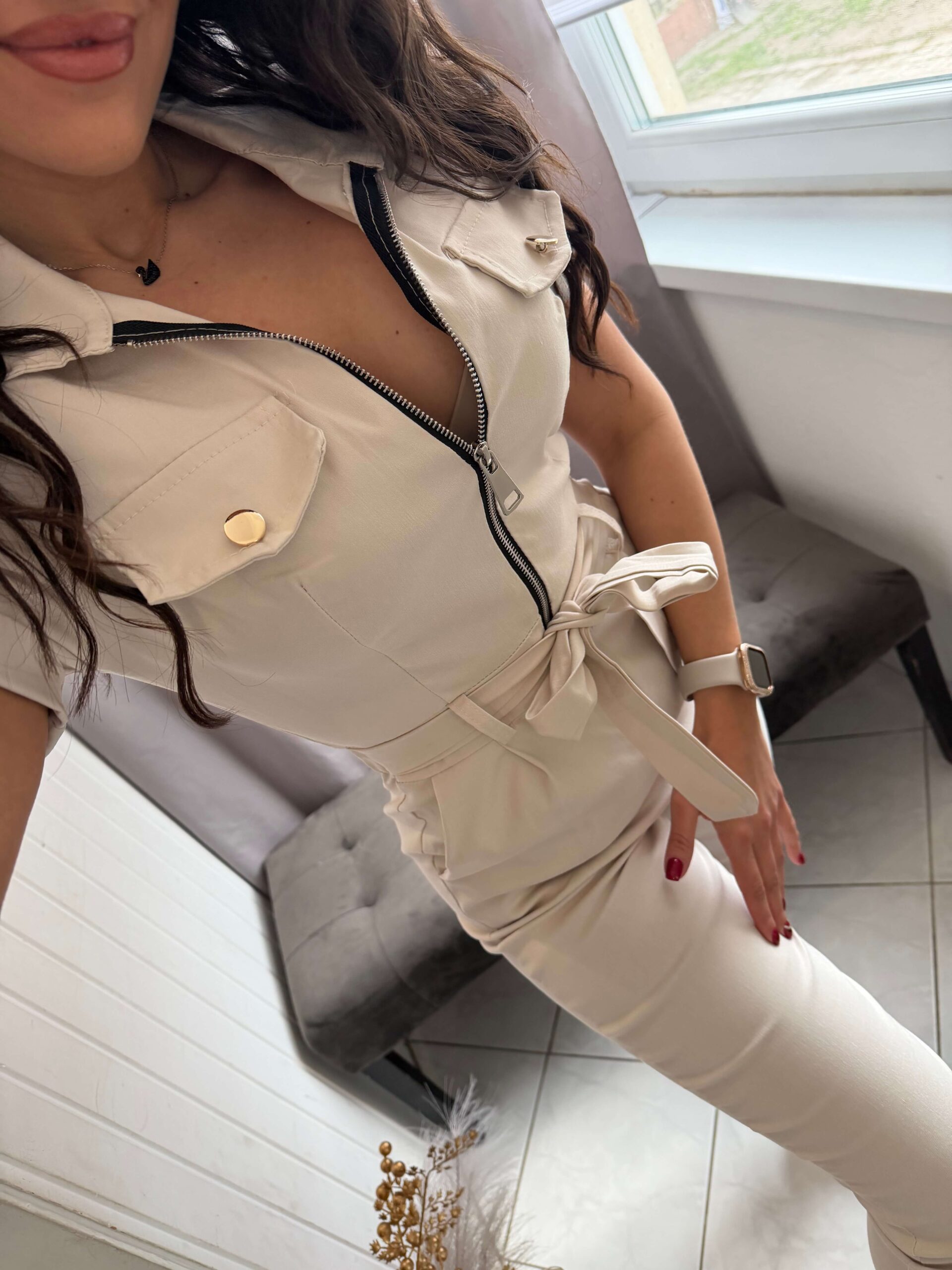 Derekán kötős kialakitás. Cipzáras fazon.