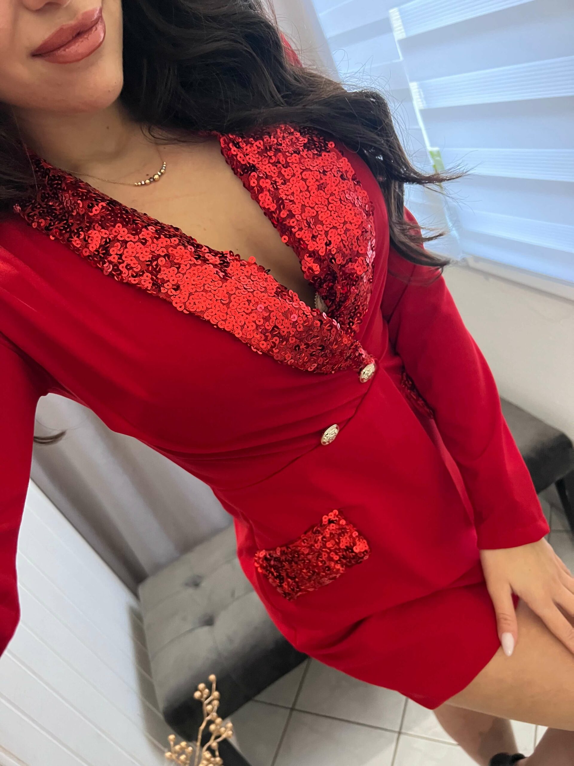 Roxen piros flitteres ujjú rövid nadrágos overál.